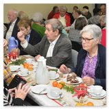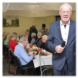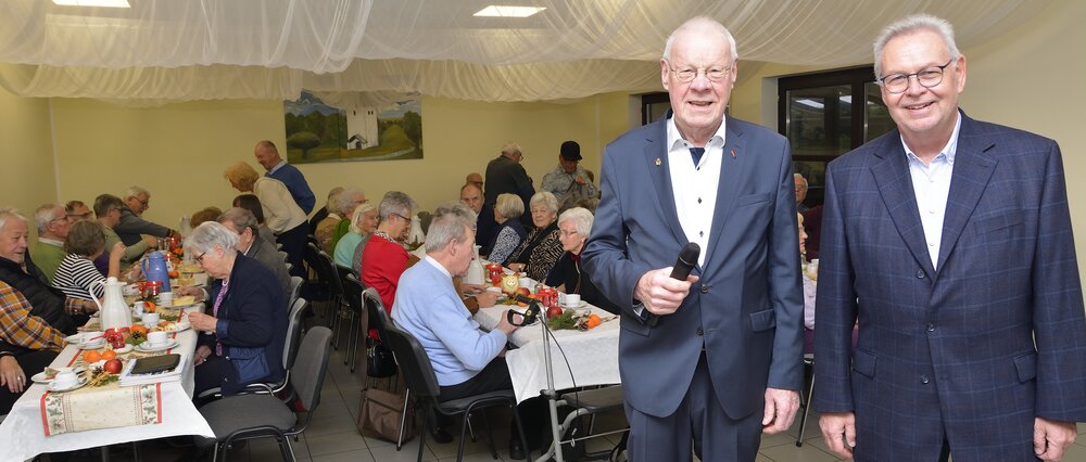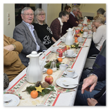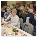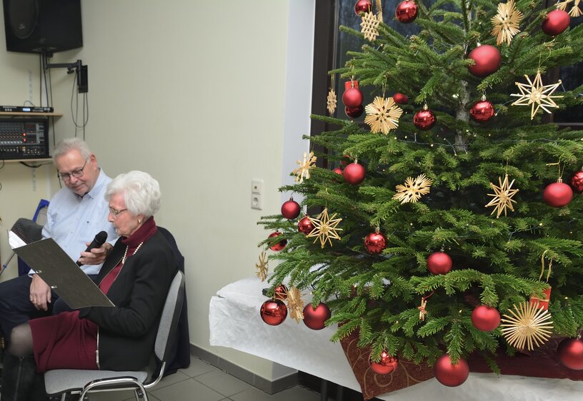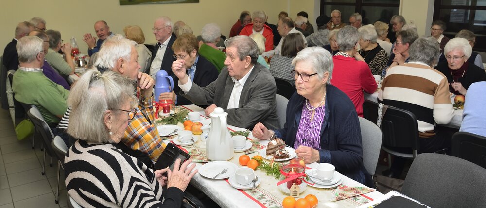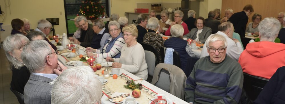 Bei Kaffee, Kuchen, Mettbrötchen und Weihnachtsplätzchen verbrachten die Seniorinnen und Senioren frohe Stunden in geselligen Runde. Begleitet wurden sie vom stellvertretenden Vorsitzenden René Bertram, der auf seinem Akkordeon Weihnachtslieder intonierte. Außerdem trugen Mitglieder weihnachtliche Texte vor. So erfuhren die Besucher, wie ein Opa den „Chressboom“ unter der Wirkung einer von ihm geleerten Flasche Cognac mit Karnevals-Utensilien einschließlich seiner Präsidentenmütze schmückte. Sie hörten eine Drei-Königs-Geschichte aus Russland und erhielten Erläuterungen zum astronomischen Hintergrund des „Sterns von Betlehem“.